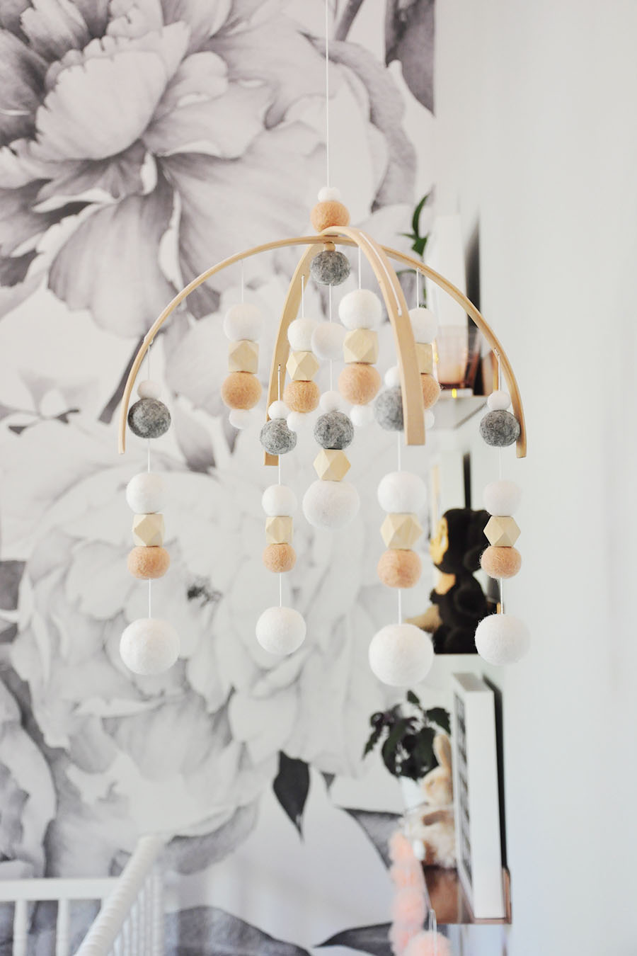 Так как скандинавские детские не предполагают яркую отделку и мебель, красок помогают внести декоративные элементы, причем это не статуэтки, а вполне используемые вещи. Например, мобили над кроваткой, книги, развернутые обложкой, а не корешком, детские игрушки (благо их всегда хватает), даже корзина для их хранения. Украшением также являются картины / постеры на стенах, деревянные домики, бумажные или светящиеся гирлянды.
