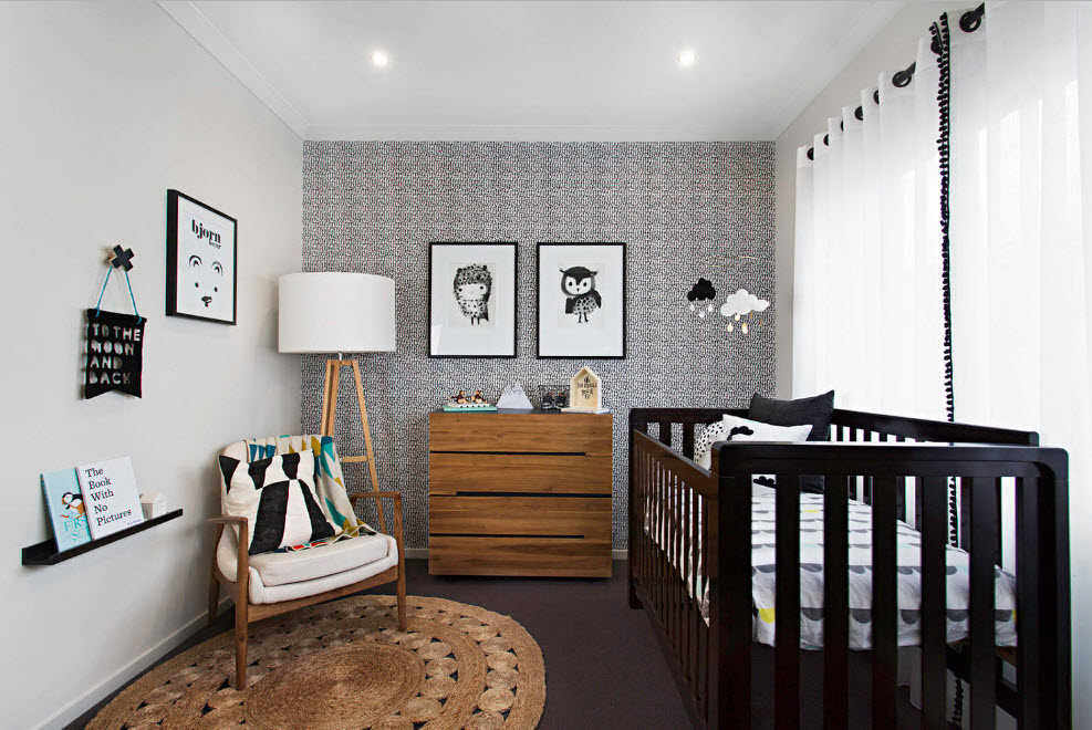 Это может быть мелкий или крупный рисунок на одной или нескольких стенах. Если вы решили использовать такие обои, сведите к минимуму количество других красочных деталей. Подберите светлую или деревянную мебель, белые шторы и т. д. Главным акцентом в дизайне должно быть что-то одно: либо стены, либо мебель, либо декор. Все остальные предметы должны гармонично дополнять картину.