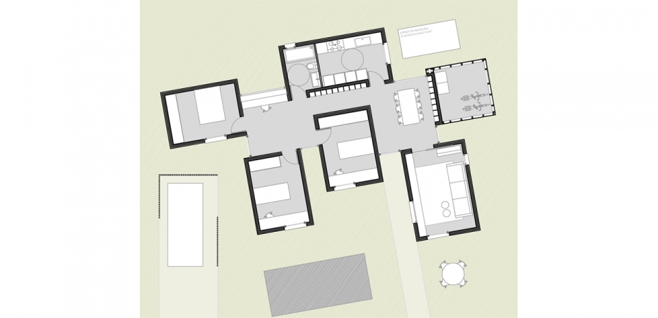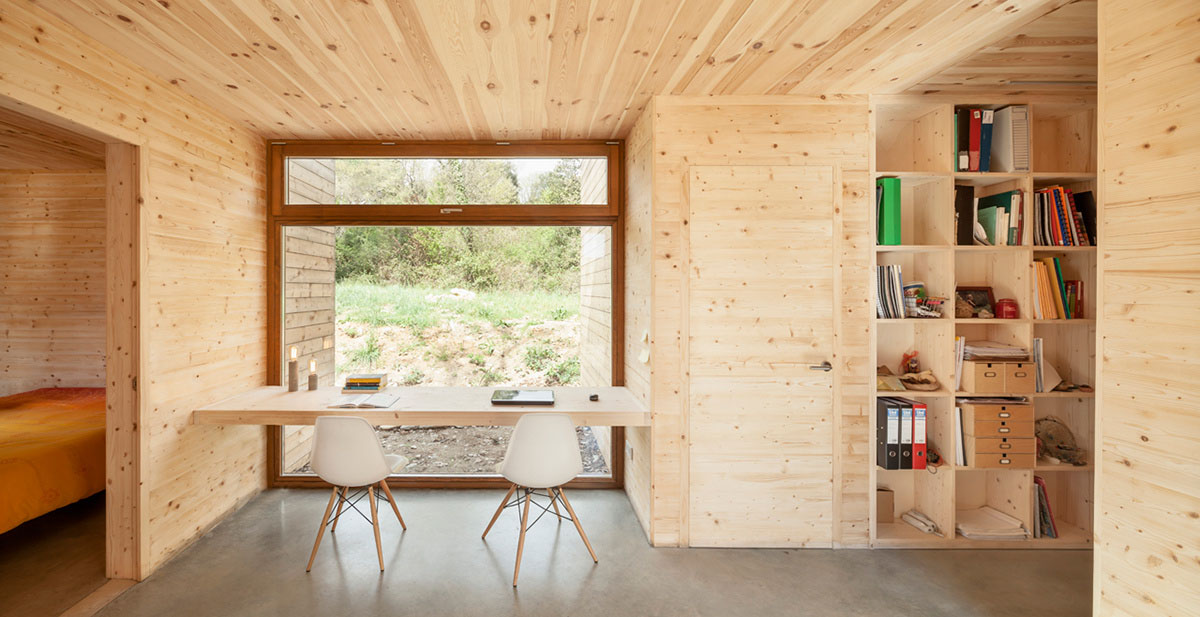 Проектом этого простого дома занимались архитекторы компании Alventosa Morell Arquitectes. Он состоит из шести модульных блоков, объединенных между собой. Общая площадь равна 112 кв. м. Владельцами его является семья с двумя неугомонными детьми, которые обратились к компании с просьбой как можно быстрее возвести дом, при этом он должен быть выполнен из натуральных материалов, быть энергоэффективным и вписываться в окружающую среду.