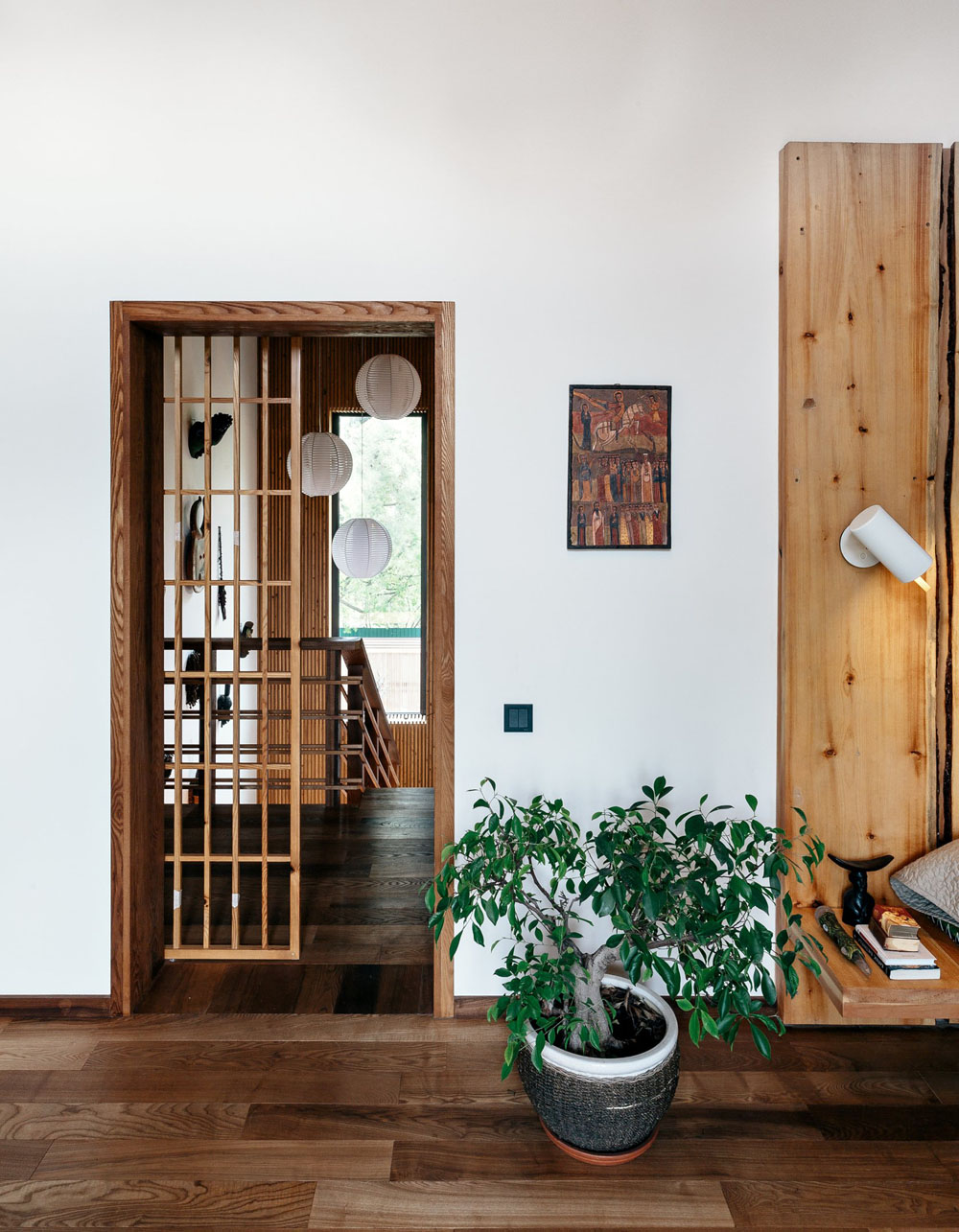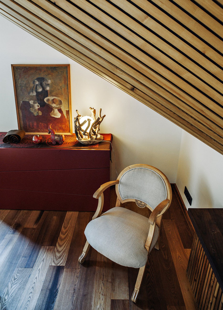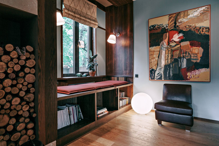 Он был оформлен декоратором Ольгой Иевлевой и самим владельцем, который любит путешествовать. Дружной командой они работали над каждым уголком, продумывали мебель, что-то заказывали в столярной мастерской, что-то покупали. Хозяин любит ездить по Африке и Японии, поэтому в будущем интерьере он хотел видеть привезенные предметы искусства, маски, панно и ковры. Декоратор предложила минимализм как основу, и в результате получила идеальное комбо.