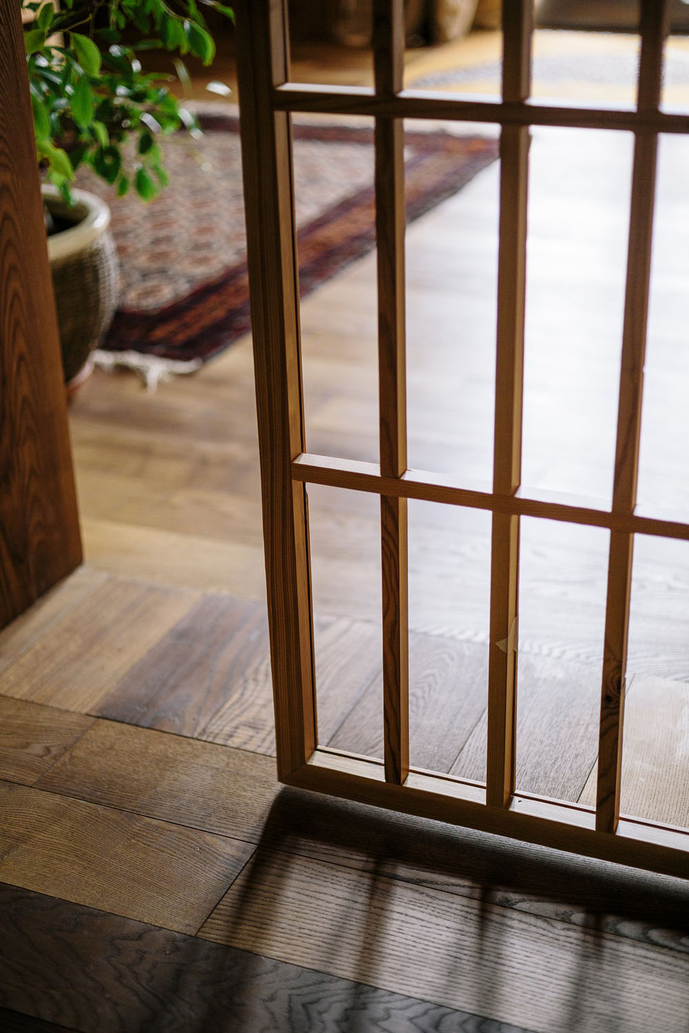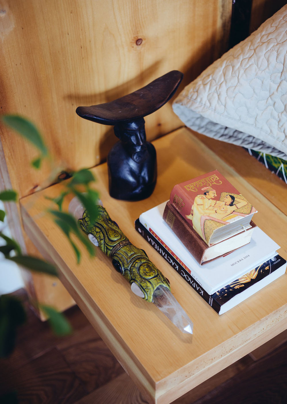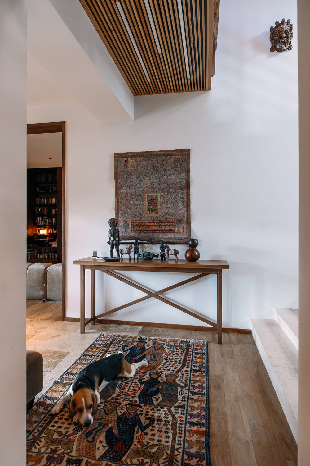 Он был оформлен декоратором Ольгой Иевлевой и самим владельцем, который любит путешествовать. Дружной командой они работали над каждым уголком, продумывали мебель, что-то заказывали в столярной мастерской, что-то покупали. Хозяин любит ездить по Африке и Японии, поэтому в будущем интерьере он хотел видеть привезенные предметы искусства, маски, панно и ковры. Декоратор предложила минимализм как основу, и в результате получила идеальное комбо.