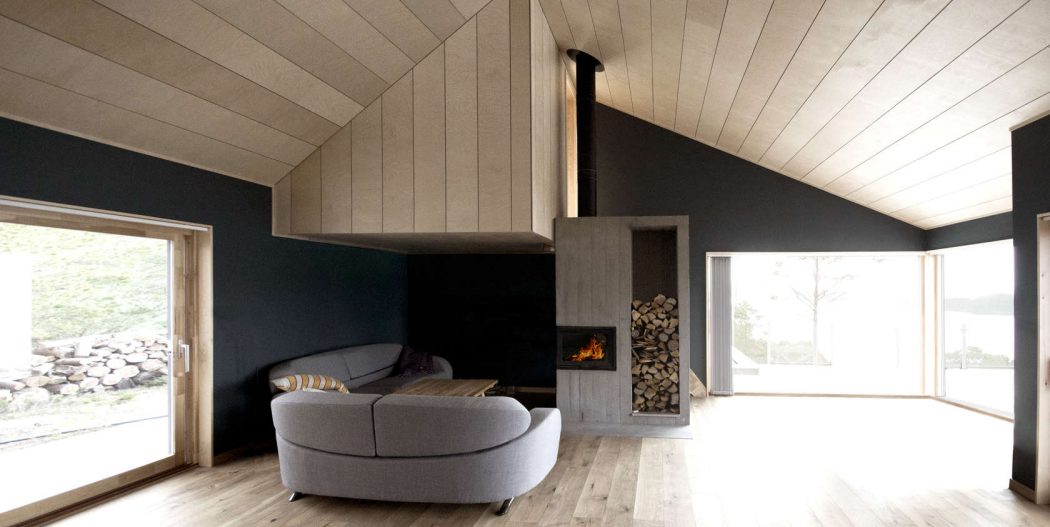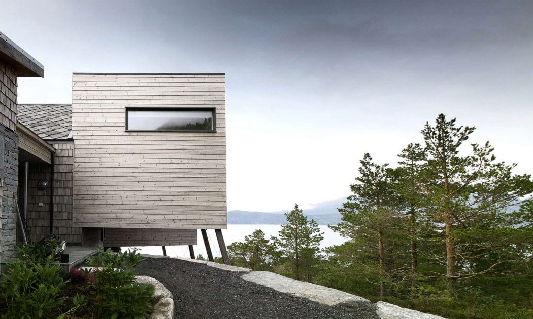 Этот дом в стиле минимализм расположен в южной части Норвегии. Он был спроектирован и возведен компанией Rever and Drage Architects (Rever og Drage Arkitekter). На его месте стоял традиционный норвежский дом, которому было решено придать более модерной вид. В результате получился современный минималистичный проект, отражающий модные на сегодня тенденции архитектуры. Благодаря каменному основанию и металлическим колонам, конструкция уверено выстоит при сильном штормовом ветре. Несмотря на то, что снаружи дом напоминает арт-объект, внутри обустроен уютный интерьер в лаконичном стиле минимализм.
