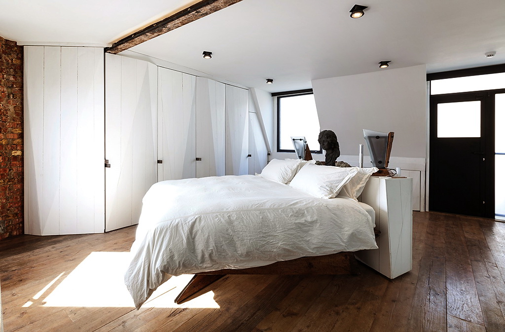 Каждый предмет в этой квартире отражает мужской характер. Это неудивительно, ведь его создали дизайнер Michaelis Boys Associates и неисправимый холостяк, который является владельцем квартиры. Интерьер являет собой смесь грубой кирпичной кладки и утонченной современной мебели. Здесь нашлось место даже мотоциклу. Общая площадь составляет 114 кв. м. Это дало много возможностей в плане дизайна, который, несомненно, наполнен свободой и бунтарским духом. Благодаря открытой планировке пространство составляет единую композицию. Для того чтобы не нарушать основную концепцию в качестве перегородок в ванной комнате выбрано стекло. Безусловно, такое решение может позволить себе только одинокий человек.