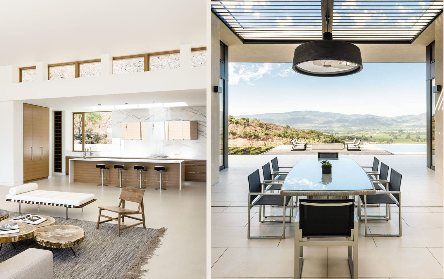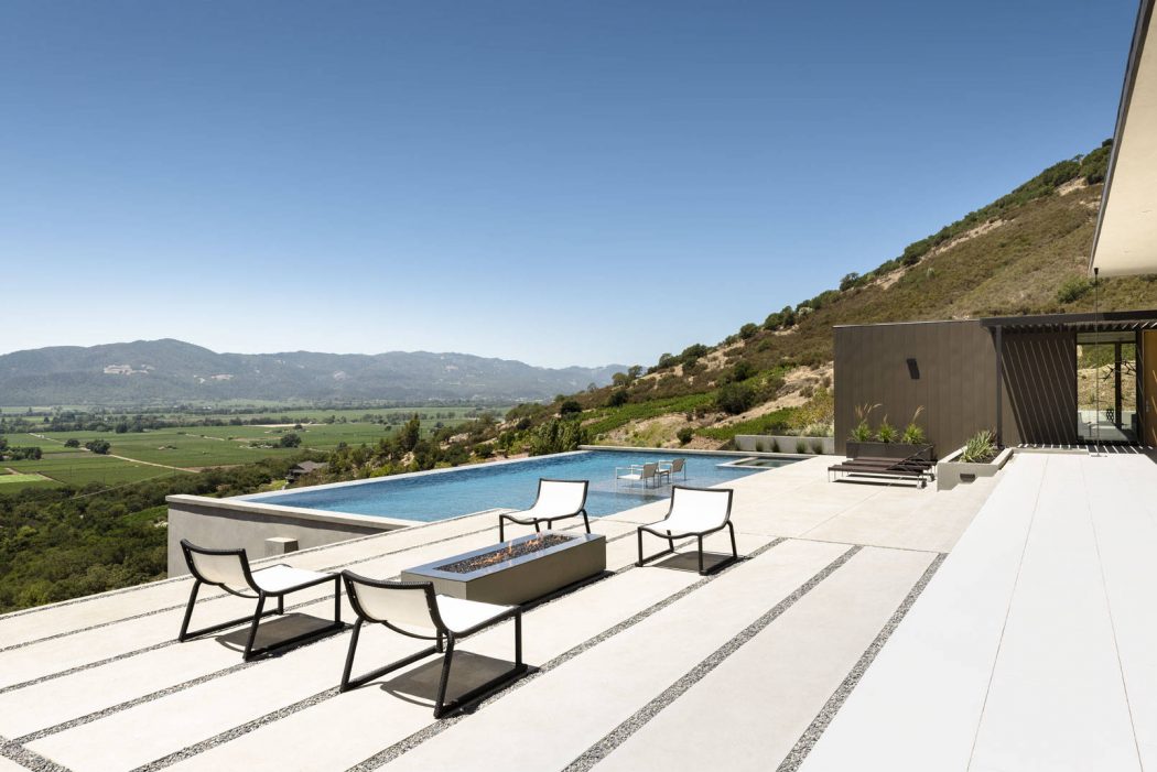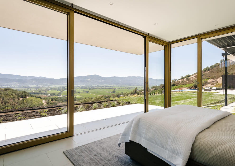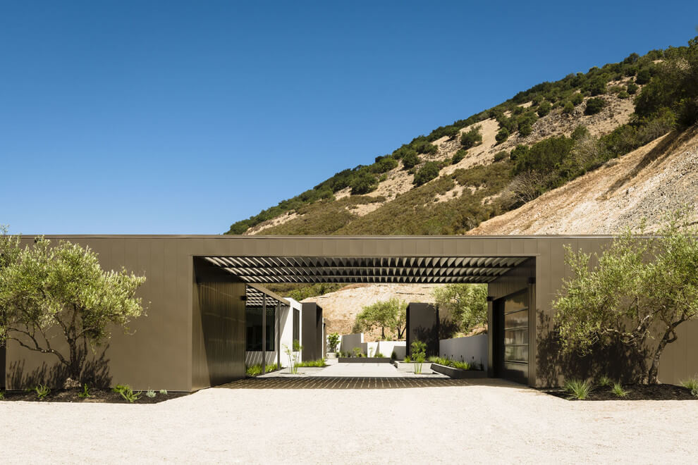 Этот дом в стиле минимализм расположен в городе Напа, Калифорния, США. Его расположение на холме обусловило архитектуру и внутренний интерьер дома. Проектировщики из John Maniscalco Architecture решили создать простой и в тоже время уникальный особняк, открывающий потрясающий вид на зеленую долину. Дом имеет линейную форму и отображает путь Солнца по функциям повседневной жизни. Следовательно, внутренняя планировка продумана таким образом, чтобы каждый интерьер был продолжением предыдущего в зависимости от его функционального назначения.