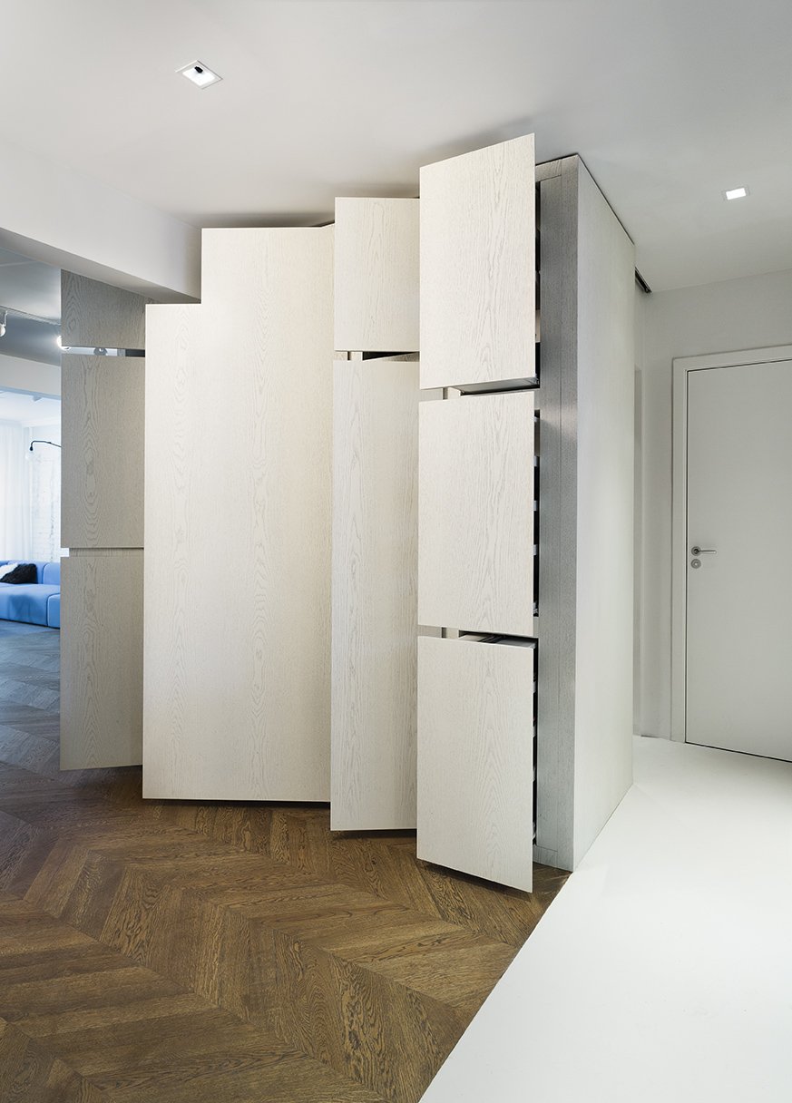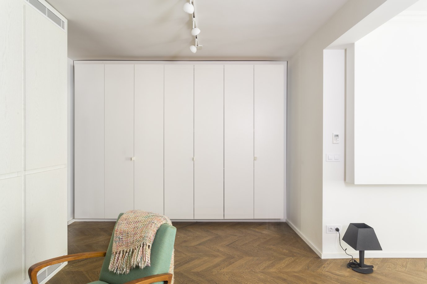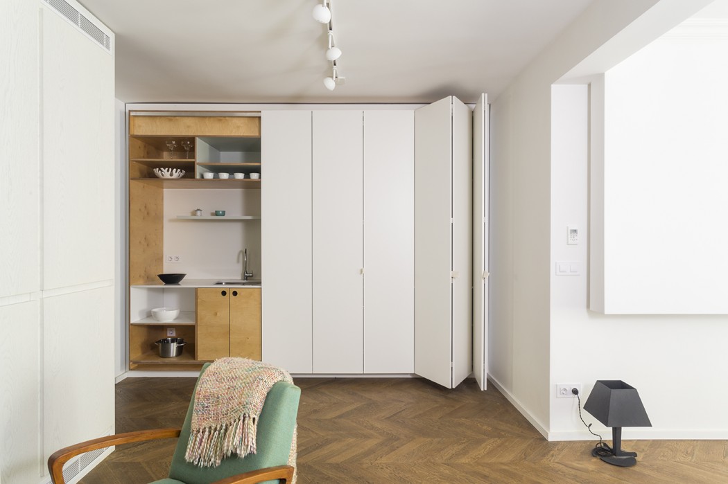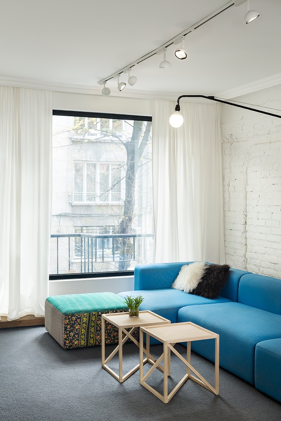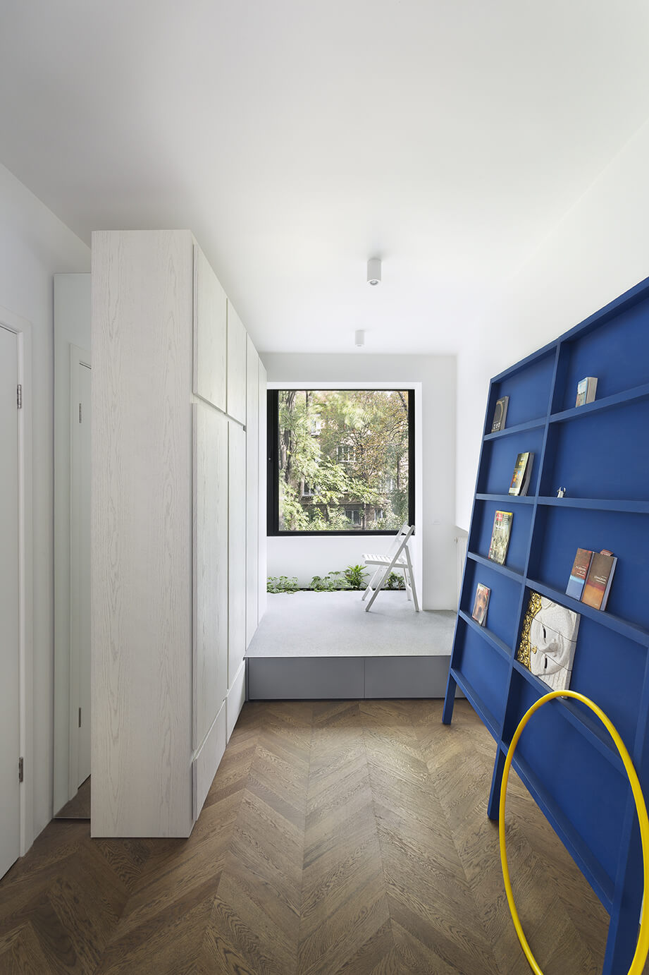 Квартира в скандинавском стиле из Софии расположена на первом этаже старого здания. Основная цель проекта заключалась в максимальном потреблении естественного света и создание комфортных условий для жизни. На небольшом пространстве дизайнерам удалось разместить полноценные зоны, используя при этом хитрости планировки. Творческие идеи для хранения могут быть замечены по всей квартире; даже встроенная кухня, сделанная из фанеры, может быть скрыта за белыми раздвижными дверями. Холодильник скрыт за белыми фасадами у другой стены. Для зоны отдыха с креслами и камином также нашлось место в гостиной. Благодаря красивой кирпичной отделке интерьер выглядит очень стильно, синий диван при этом идеально вписывается в светлый дизайн. Наслаждайтесь!