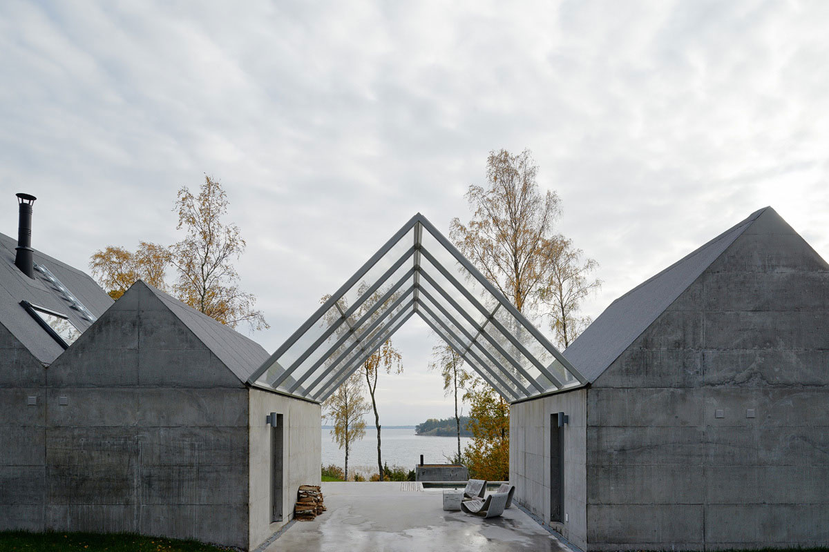 Lagnö построен из монолитного бетона и вовсе не скрывает своего происхождения за привычными отделочными материалами. Несимметричная скатная крыша интересная задумка архитекторов. Она необычна и очень оригинальна. Интерьер дома в отличие от экстерьера очень нежный и светлый. Ванная, кухня и спальня расположены на северной стороне и надежно спрятаны за толстыми бетонными стенами. Гостиная и столовая с огромными окнами находятся с южной стороны. Благодаря этому открывается прекрасный вид на соседние острова и Балтийское море на горизонте.