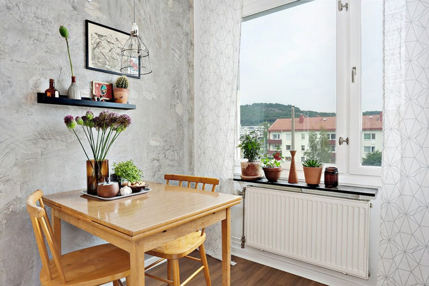 Если вы любите отдыхать и расслабляться на кухне, заниматься работой или увлечениями, выбирайте обои с нейтральных оттенков, возможно с мелким узором.