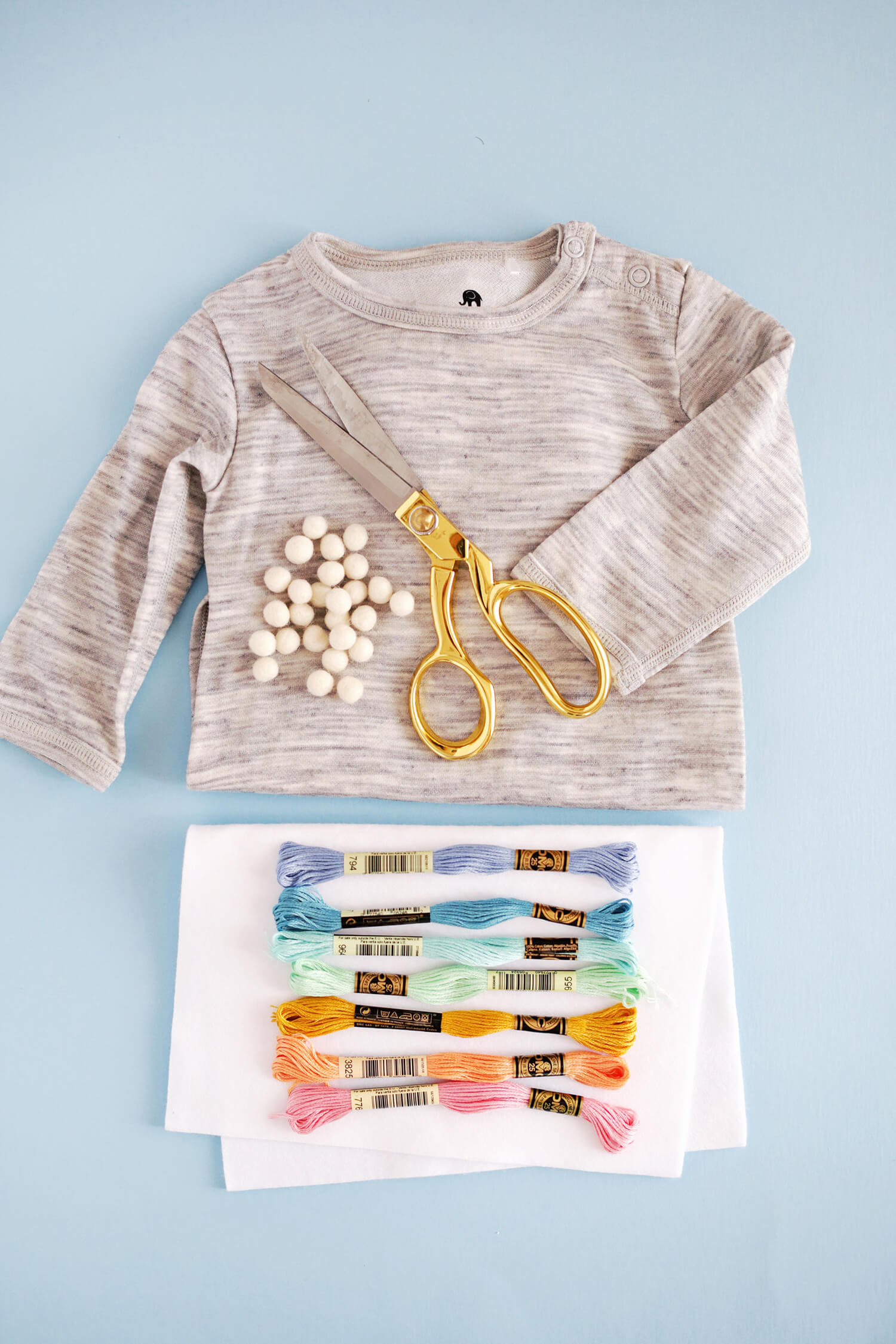Шаг третий: Теперь самое интересное. Пришиваем цветные нитки и шарики. Делать это стоит аккуратно, не натягивая ткань.