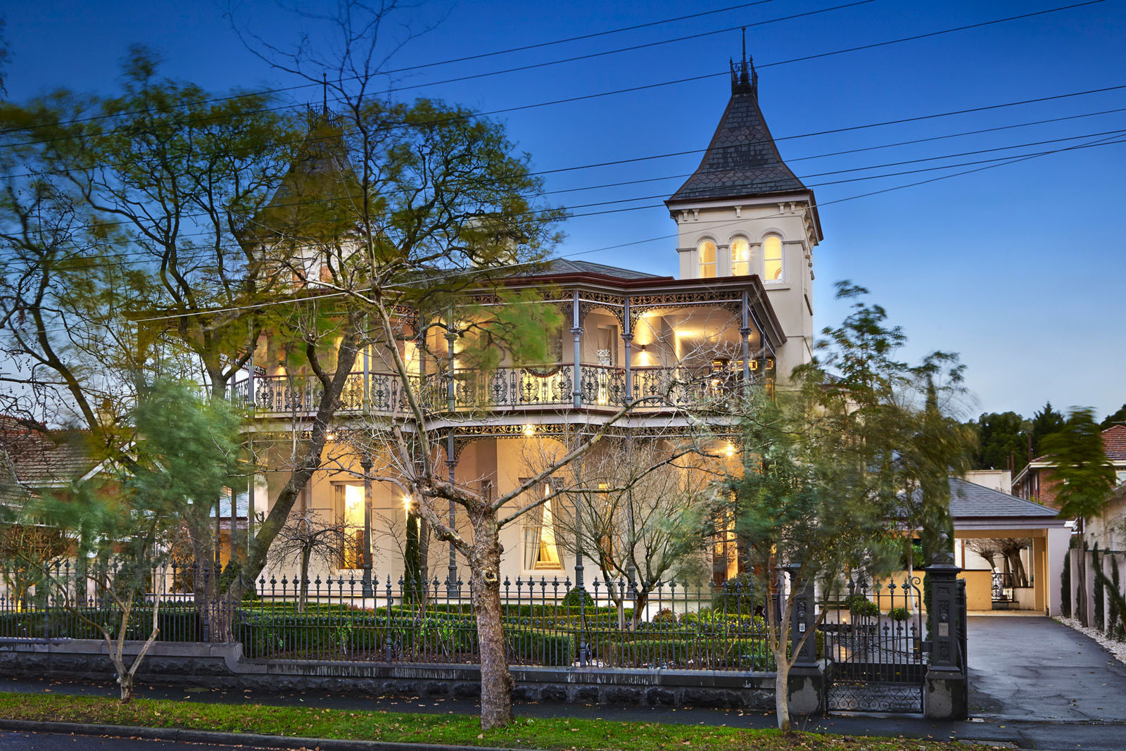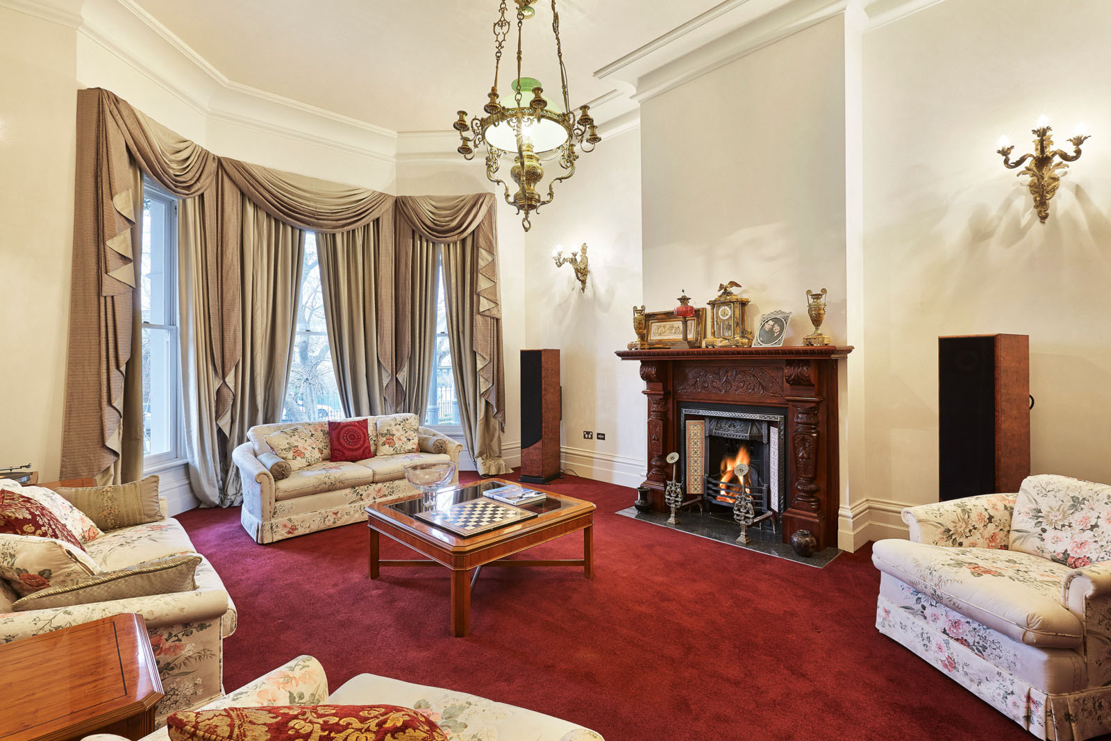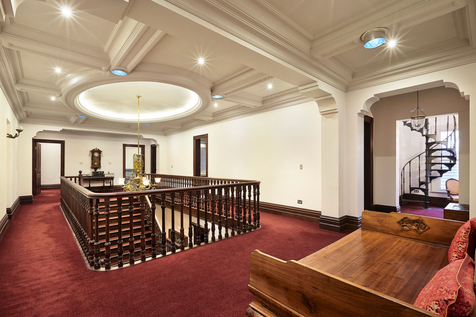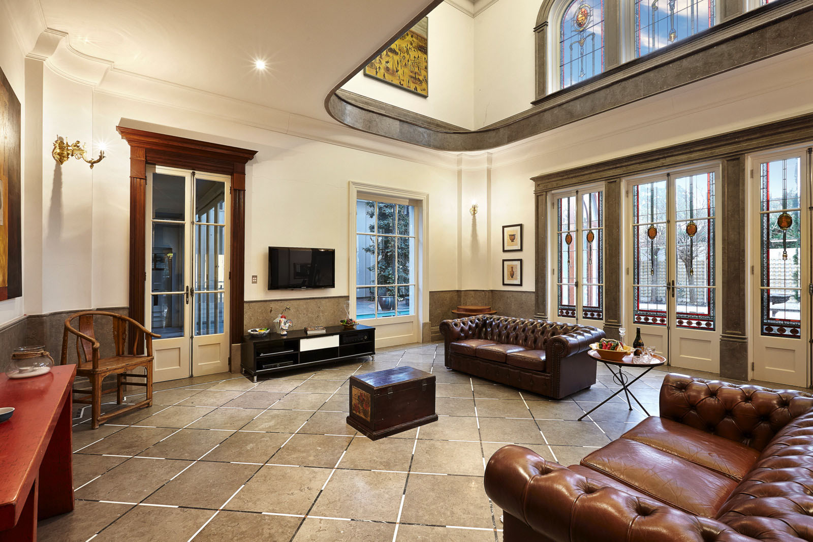 Внутренний интерьер выполнен в классическом стиле с использованием большого количества дерева. Особо роскошно выглядит деревянная лестница в холе под сводчатым потолком. В резиденции есть семь спален и столько же ванных комнат. Также найдется парочка гостиных, несколько балконов и башен, которые открывают панорамный вид на город.