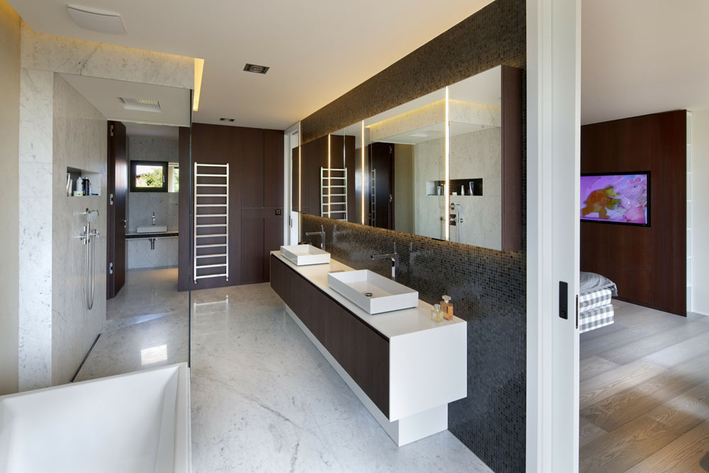 Этот роскошный дом с пятью спальнями впечатляет не только своими размерами, но и ультрасовременным оснащением. Он был спроектирован компанией Jestico + Whiles, которая сумела создать идеальный дом для своих клиентов. Инженерам и архитекторами компании удалось внедрить новейшие технологии экологического проектирования. Дом расположен недалеко от Праги в Чехии и носит имя Villa Pruhonice. Проект тяжело назвать скромным, учитывая коллекцию автомобилей, для которых построен гараж, напоминающий витрину автосалона.