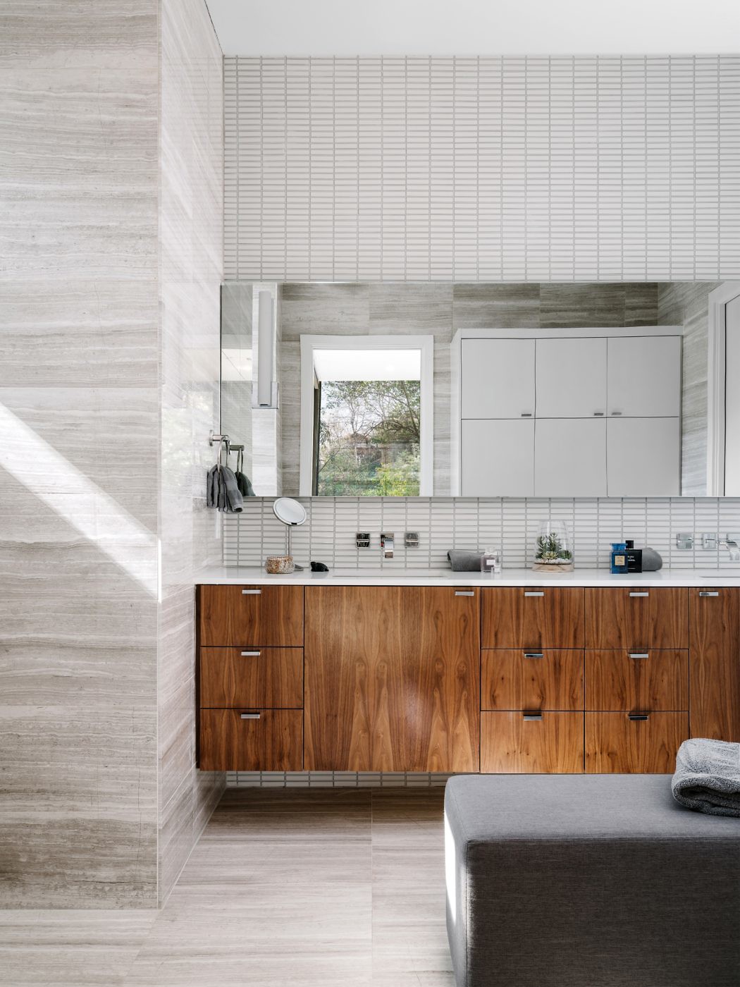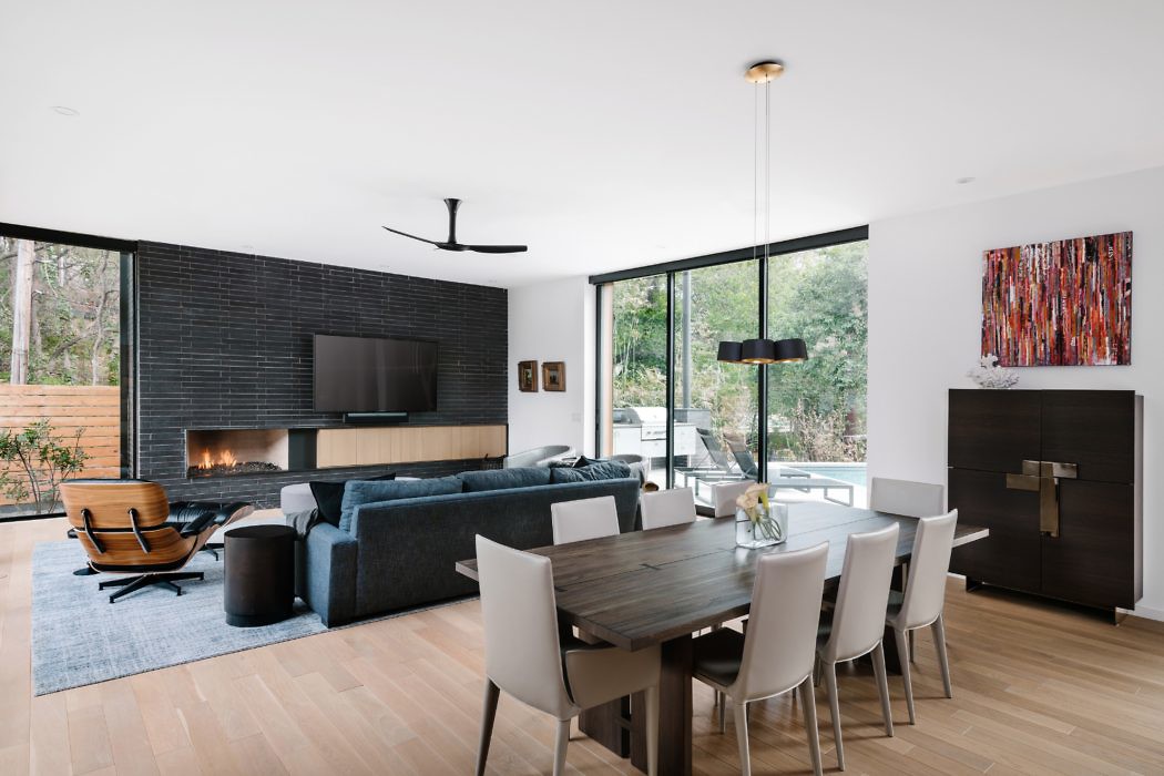 Сочетание нескольких материалов в экстерьере дома всегда выглядит эффектно, согласны? Архитектор Джей Кордер использовал дерево и декоративный камень для отделки фасада, и в результате получил красивый и современный дом, который точно вызывает интерес у соседей. Он имеет два уровня, на первом из которых расположены гостиная и кухня, а на втором – несколько спальных и ванных комнат, а также ещё одна лаунж комната. Дизайн интерьера оформлен в стиле минимализм, при этом он не кажется уж слишком лаконичным. Всё дело в различных текстурах (камень, дерево, текстиль), которые добавляют живости интерьеру.
