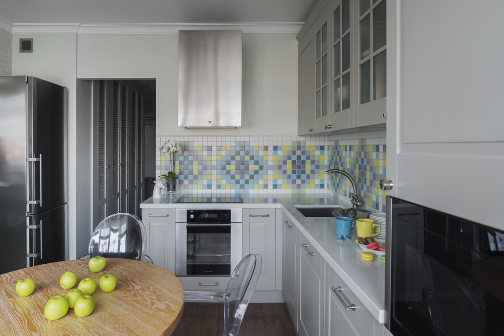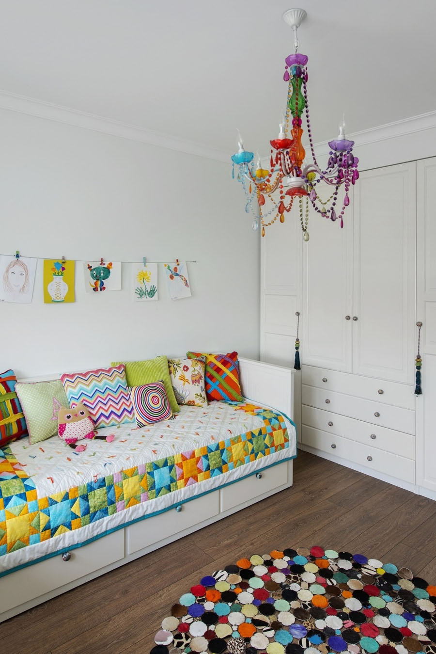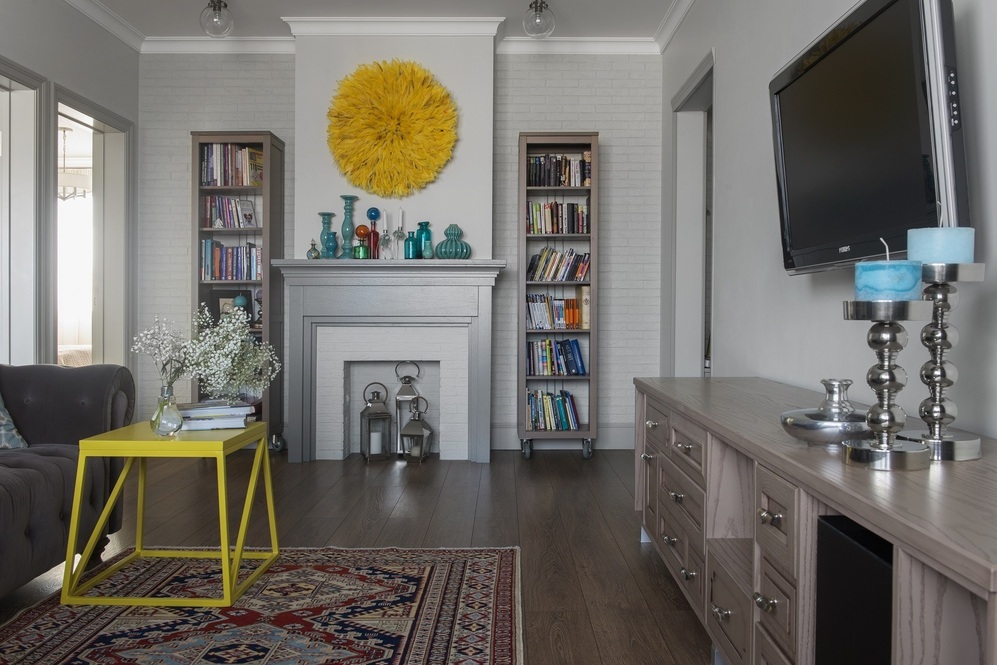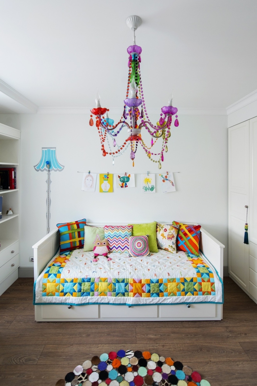 Созданием интерьера собственной квартиры занималась дизайнер Ирина Величко. На 75 кв. м ей удалось спланировать три комнаты: детскую, гостиную и спальню для взрослых, а также кухню-столовую. Первая сложность, с которой она столкнулась, заключалась в перепланировке. Почти все стены в квартире оказались несущими, избавиться от перегородок удалось лишь между ванной и туалетом, а также между коридором и одной из комнат. В результате Ирина избавилась от длинного коридора и спроектировала удобный санузел.
