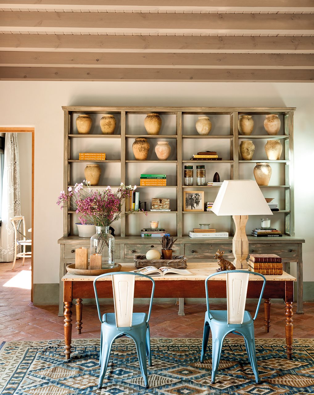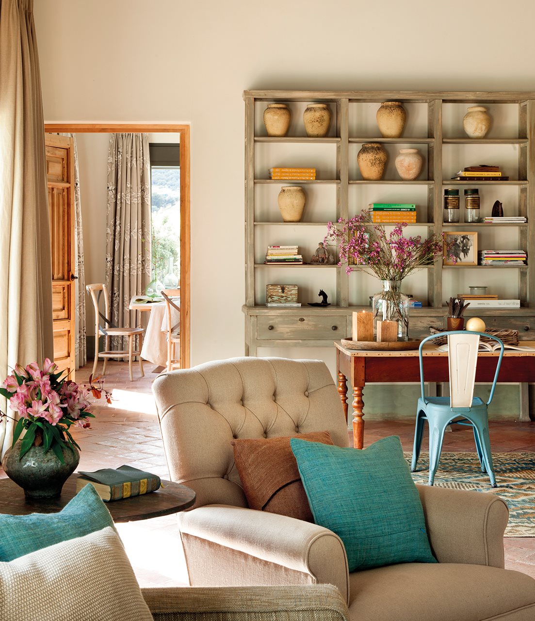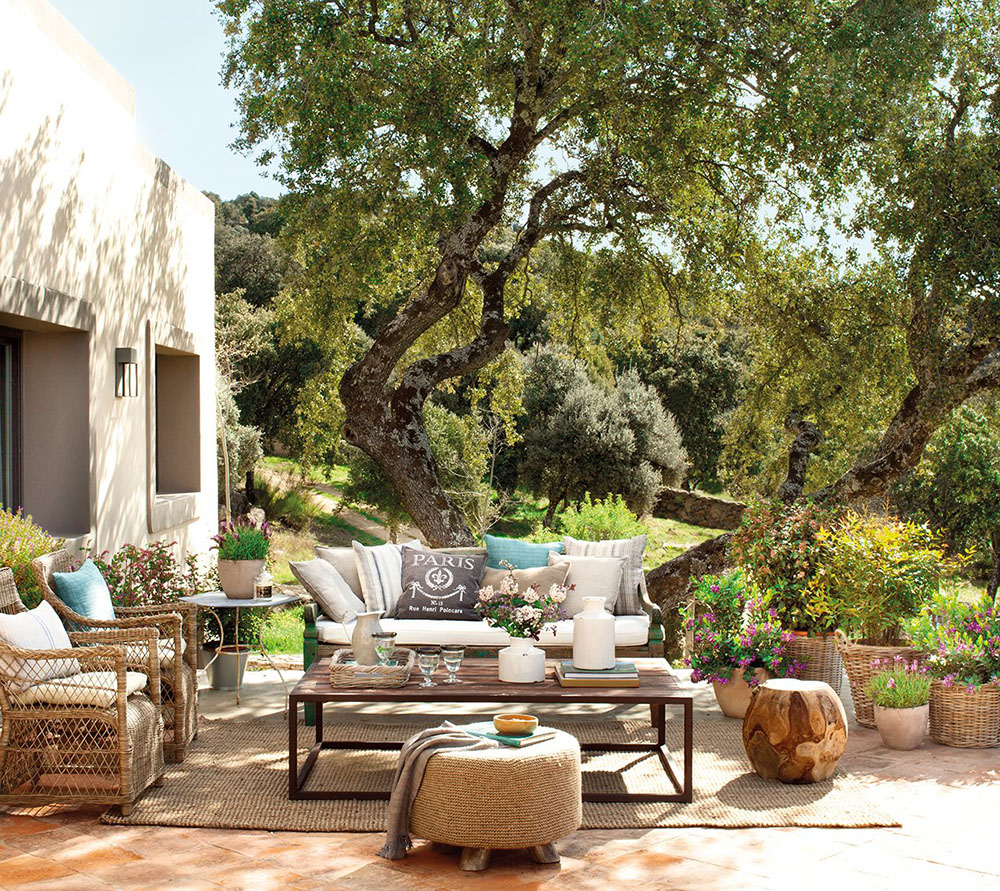 Убеждаемся лишний раз, что испанцы знают толк в красоте и комфорте. Теплые цвета, мягкая мебель и всякие потертости создают такой очаровательный и природный интерьер. Этот дом принадлежит семье из Италии. Поиском идеального места для строительства они занимались целый год, при этом им удалось объехать и изучить 120 км вокруг Мадрида.