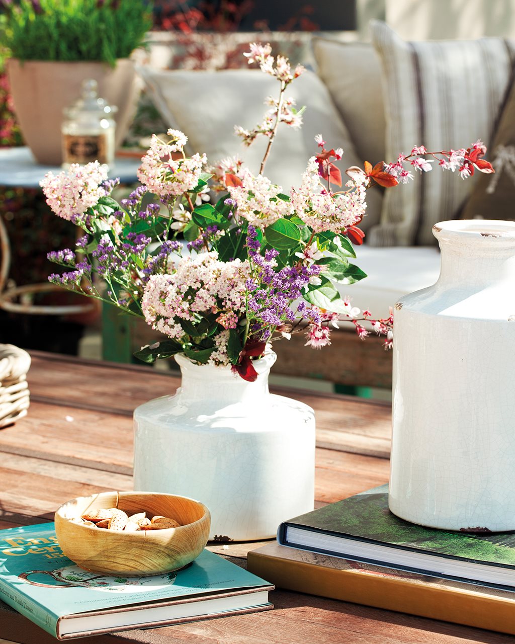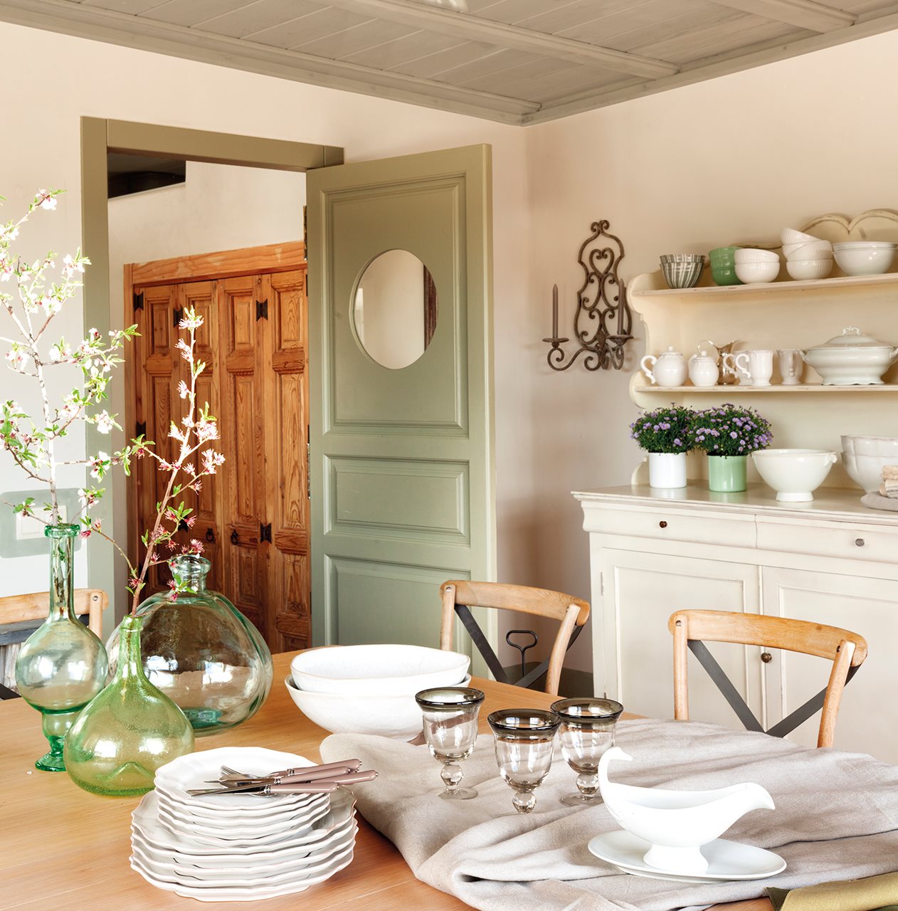 Дом расположен на высоте 800 м, что позволяет любоваться видами в любое время года. С этой целью здесь обустроена уютная терраса. Когда вы загляните вовнутрь, то убедитесь в том, что интерьер ни сколько не уступает внешней красоте. Мебель, текстиль и предметы быта прекрасно сочетаются друг с другом и создают очаровательную картину. Вся мебель была куплена на ярмарках и в магазинах Испании и Англии. Красота!