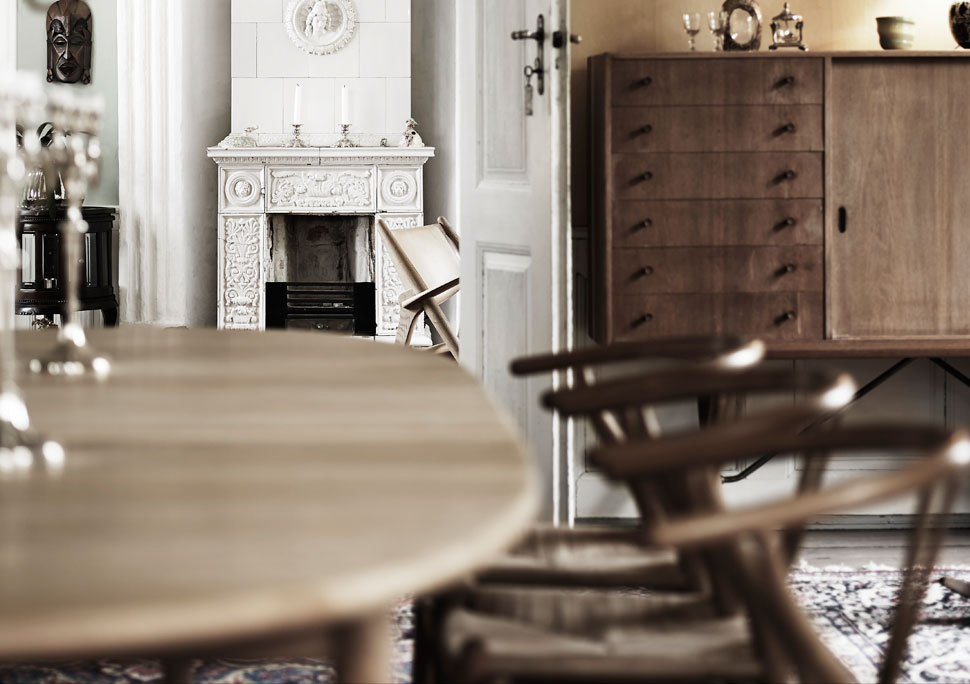Красивый белый дом с красной черепицей в окружении рва с водой больше напоминает дом из какой-нибудь сказки. Этот, безусловно, впечатляющий особняк из Дании, расположен на третьем по величине острове страны. Он отлично вписывается в сельскую местность. Принадлежит особняк Кнуд Эрику Хансену, который получил его от своего прадедушки. Это владелец датской компании с мировым именем Carl Hansen & Søn, которая занимается созданием мебели. Потрясающие примеры их робот вы увидите по всему дому.